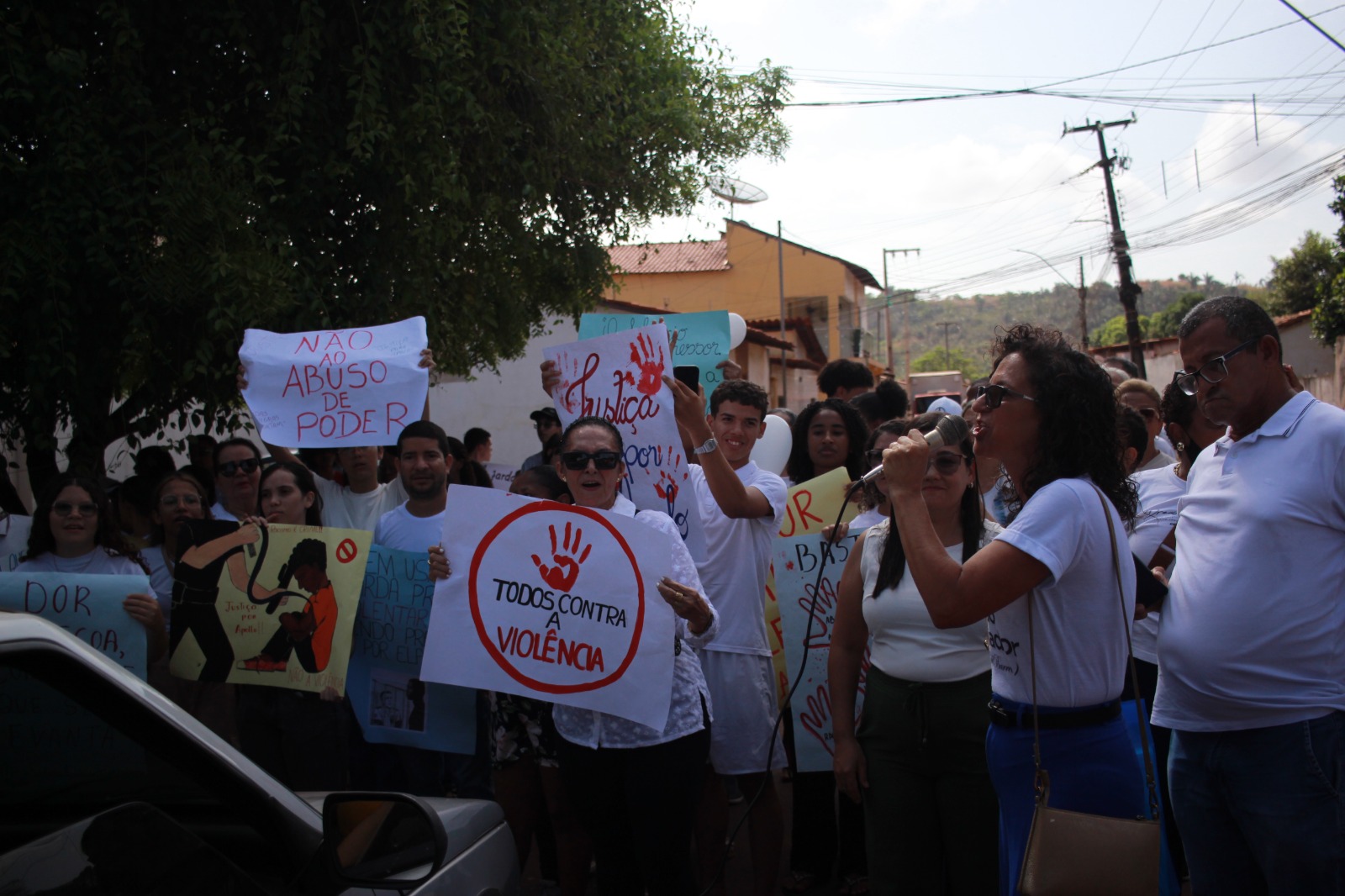 Um dos momentos mais tocantes foi a participação da mãe de Apolo, Antônia Iris, que caminhou ao lado dos manifestantes, trazendo a dor e a resistência de toda uma família. Emocionada, deu seu depoimento à população.